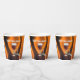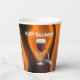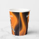 Fun Halloween tasses de papier à thème fait dans une flamme étrange comme arrière - plan. Des images de la main d'un squelette tenant un verre de vin décorent le milieu de la tasse avec un texte gris personnalisé, en haut, prêt à personnaliser pour lire ce que vous voulez. Des produits de cocktails Halloween correspondants sont disponibles.