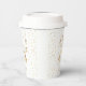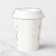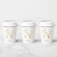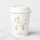Accueillez vos invités, vos amis et votre famille avec ces tasses de papier de Noël design et moderne de la saison des Fêtes, avec une jolie fausse écriture manuscrite en or citant "Joyeux Noël" sur un élégant arrière - plan blanc, avec confetti d'or. Ajoutez facilement votre événement ou tout autre texte pour customiser le modèle.