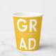 Coupes de papier de graduation personnalisées avec "Grad" en caractères blancs gras avec un arrière - plan jaune ou la couleur de votre choix. Personnalisez les tasses de papier de graduation en ajoutant le nom du diplômé et l'année de graduation. Les tasses jaunes de papier de fin d'études sont parfaites pour les fêtes de fin d'études secondaires et collégiales.