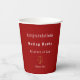 Élégantes tasses en papier avec écailles d'or de justice sur rouge foncé, arrière - plan pourpre. La couleur peut être changée à votre goût. Ajoutez votre nom, votre université et votre année de diplôme.