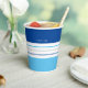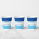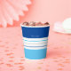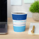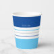 Ces tasses en papier moderne sont ornées d'une motif colorée à rayures bleues et blanches. Personnalisez-le avec votre nom en haut. Customisez le jeu de couleurs en cliquant sur Customiser plus loin.