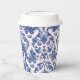Ces tasses en papier présentent un design millénaire avec un motif damassé bleu marine sur un arrière - plan rose vif.