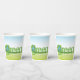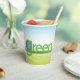 A globe in the word green forming green earth world. This design looks really effective on these Paper Cups