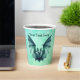 These paper cups are a mix of blues and green with a Halloween flying bat with furry body with a bluish green colour. Customise your text with the templates on the front and back.