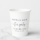 Des tasses en papier élégantes pour votre réception de mariage et d'autres célébrations post-mariages avec "Happily Ever After Party" dans une typographie moderne simple et un script élégant avec des swashes, vos prénoms unis par un coeur et votre date de réception.