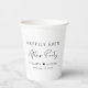Des tasses en papier chic pour votre réception de mariage et d'autres célébrations post-mariages avec "Happily Ever After Party" en typographie simple et un script moderne élégant, vos noms réunis par un coeur et votre date de réception.