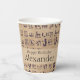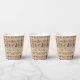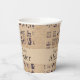 Ces tasses de fête personnalisées ont un thème d'art égyptien antique. Une série d'hiéroglyphes égyptiens sont imprimés sur un papier parchemin arrière - plan. Un exemple de message et de nom Joyeux pour l'anniversaire sont imprimés au centre sur un beige sablonneux assorti.