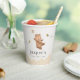 Un ours doux tenant un ballon crème, avec des abeilles et un nid d'abeille autour d'eux. Parfait pour votre première fête d'abeilles sur le thème de l'ours ! Vous pouvez remplacer le numéro 1 de la bulle par n'importe quel numéro, modifier tout le texte ou supprimer le numéro si vous le souhaitez.