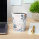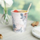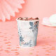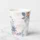 Une police de signature manuscrite combinée à une sans serif moderne est utilisée dans cette collection de papeterie florale pour donner un ton chaleureux et intime à votre mariage. La tasse en papier montrée ici présente vos noms et date mariage avec une bordure de fleurs luxuriantes et de feuillage dans les tons du bleu poussiéreux au rose pâle. Recherchez ID771 pour voir d'autres pièces et choix de couleurs pour cet ensemble.