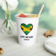 Coupe en papier jamaïcain avec drapeau jamaïcain en forme de coeur vert, noir et or. Super coupe de fête pour les événements jamaïcains à thème pour les femmes et les filles. Customisez le texte avec vos propres détails personnels : nom, marque d'entreprise, informations d'événement, etc.