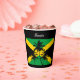 Patriotic Jamaican birthday party personalised paper cups. This colourful design features a Jamaican flag front and back, with black tropical palm tree silhouettes. The customisable text on the front can be changed to add names or a message. Text on the back says HAPPY BIRTHDAY, but this can also be customised if you prefer