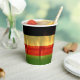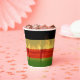 Rasta jamaïcain colle rouge, vert, jaune or et noir tasse de papier avec plage et arrière - plan de palmier. Idéal pour des vacances en Jamaïque ou pour les amoureux de la culture insulaire / caribéenne.