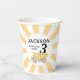 Aquarelle jaune sous les camions du chantier de construction des tasses de papier garçon d'anniversaire.