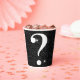 Ce jeu de tasses mystère sombre sera un succès lors de votre prochaine enterrement de vie de garçon. Avez-vous une âme de farceur ? Vous voulez inciter les gens à boire des liquides inconnus ? Ce design est fait pour vous ! Ce gobelet en papier présente un point d'interrogation blanc sur un fond noir faussement brillant. Parfait pour toutes sortes de jeux à boire.