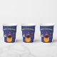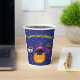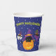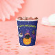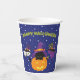 Cette mignonne tasse en papier d'Halloween présente des chattes adorables avec des casquettes sorciers et une lanterne de jack o' sur un arrière - plan étoilé violet. Texte "Happy Halloween" en vert éffrayant. Facile à customiser en cliquant sur "Personnaliser". Parfait pour votre fête d'Halloween.