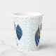 Des ornements d'arbres de Noël bleu et or sur des points bleus et or et les mots Joyeux Fêtes (ou n'importe quel texte) sont présentés sur ces tasses de papier bleu pâle, idéal pour toute occasion de Noël de vacances. CORRESPONDRE des articles dans notre magasin.