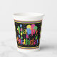 Bonne fête d'anniversaire colorée avec ballons de fête et étoiles décoratives.