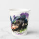 Happy Birthday Monster Truck Smash Crash Boy Kids Paper Party Cups dispose d'un camion monstre aquarelle conduisant à travers la terre avec le texte "Happy Birthday (Nom)" dans le script de typographie moderne. Parfait pour les fêtes d'anniversaire pour enfants. Conçu par Evco Studio. Pour la coordination des éléments, voir www.zazzle.com/store/evcostudio