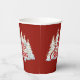 Joyeuses tasses en papier de Noël avec des arbres blancs taillées en arrière - plan rouge. Plaques de papier à assortir.