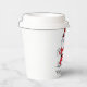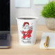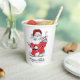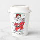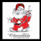 Illustration du Père Noël avec un casquette et un costume rouge, barbe blanche, tenant une pomme rouge dans une main et une boîte cadeau et un sucre de canne dans l'autre, un petit oiseau perché dans la main, ceinture noire, gants et bottes blancs, avec le texte "Joyeux Noël et Bonne Année !" en police de courbe noire, aquarelle.