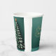 Magnifique script en or sur une élégante tasse en papier de Noël verte qui donne l'illusion unique de regarder 3D complète avec une jolie étoile au sommet de ce décor de fête de vacances. Une analyse manuscrite moderne au-dessus de votre nom de famille personnalisé.