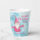 Créez des tasses de papier de Noël personnalisées uniques pour votre fête de famille avec un design élégant qui comprend un joyeux dicton de Noël, un joyeux gnome en rose et des modèles de texte pour l'année et le nom de famille. Ces tasses en papier bleu clair et rose avec motif enneigé sont parfaites pour les vacances d'hiver.
