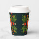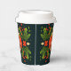 Joyeux Noël Festive Bauble Floral Holly Coffee Papier Cups dispose d'un design floral élégant avec un bauble de Noël au centre avec le texte "Joyeux Noël" en écriture or. Parfait pour les fêtes de Noël. Conçu par Evco Holidays www.zazzle.com/store/evcoholidays