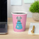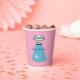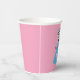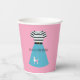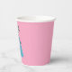 Le design de la tasse rétro amusante en papier de la fête comporte un habit féminin avec jupe bleue et caniche sur arrière - plan rose. Texte personnalisable pour personnaliser pour l'anniversaire ou d'autres événements