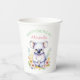 Un mignon ours koala assis dans des tasses de papier de fête d'anniversaire personnalisées de fille en fleurs roses.