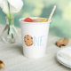 Lait et biscuits de première année tasses de papier avec un bleu et biscuit à puce au chocolat.