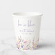 Jolies tasses de papier de douche nuptiale de printemps à l'aquarelle lilas fleurs sauvages et mauve "amour en fleur" titre.