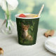 Tasses en papier avec une photo montrant un mignon petit renard à fourrure rouge et blanche. Entouré de feuilles et d'herbes verdoyants.