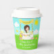 Cette petite tasse en papier mignonne et fantaisiste est composée d'une fille aux cheveux bruns, à la peau claire, sur un stand de limonade jaune orné de fleurs et de bouts. Dans l'arrière - plan est un ciel bleu, soleil et papillons. Le texte combine les polices décoratives et sans serif pour un look élégant et moderne. C'est parfait pour un anniversaire d'été. Graphiques de MUJKA