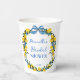 Citrons bleu ruban coquette douche nuptiale coupes en papier personnalisées modèle, citrons citrons bleu et jaune douche nuptiale coupes en papier monogrammed modèle; douche nuptiale tasses en papier imprimé, citrons italiens personnalisés décoration table personnalisée tasses imprimées personnalisées