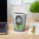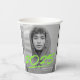 Modern graduation paper cups featuring the graduate's photo with "2023" présente en lime green, handwritten lettering with a dash below. Personalize the photo graduation paper cups by adding the graduate's name and school name. Le design repeats on the back. The personalized graduation paper cups are perfect for both high school and graduation parties !