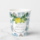 Ces gobelets en papier pour la fête de mariage présentent un motif de citron aquarelle jaune avec un motif de verdure et une bordure supérieure de carreaux d'Amalfi bleus. Les mots "Lunch de mariage" sont écrits dans une typographie tendance. Utilisez les champs de modèle pour ajouter votre personnalisation. Un choix élégant pour un thème italien en plein air. Art et design uniques par Victoria Grigaliunas de Do Tell A Belle.