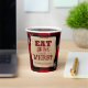 Ces tasses de fête de vacances personnalisées ont un thème festif de Noël. L'arrière - plan dispose d'un motif de plaid de Buffalo rouge rustique avec des flocons de neige. Un étiquette vintage en papier parchemin est imprimé au centre et encadré d'une bordure en feuille d'or. L'expression "Mangez Boire et Soyez Joyeux" est imprimée en haut dans une police rouge bordeaux, suivie d'un exemple de nom de famille. Vous pouvez personnaliser les tasses pour inclure votre propre nom personnalisé ou un autre texte.