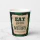 Gobelets En Papier Mangez Boire et Soyez Joyeux Vert Plaid Noël