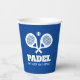 Mangez Sleep Jouez à Padel drôles tasses de papier couleur personnalisées. Raquette croisée pour petits et grands. Personnalisez avec votre propre texte. Amusants accessoires jetables pour les joueurs de padel, les amis de tennis, club, équipe etc. Bleu ou couleur arrière - plan sur mesure. Idéal pour la fête d'anniversaire, événement sportif et plus encore.