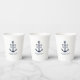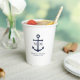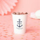 Ajoutez une touche élégante à votre mariage nautique avec cette tasse en papier mariage marine bleu ancre classique. Conçu avec une illustration d'ancre bleu marine, il présente un monogramme personnalisé de mariée et de mariée, le nom et la date du mariage dans une police serif bleu marine sur un arrière - plan blanc. Parfait pour les mariages nautiques, les mariages sur la plage et plus.