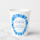 Aquarelle lâche art joli bleu moderne fleurs couronnes mariage tasses en papier. Personnalisez ces tasses à fleurs blanches et bleues avec les noms de votre mariée et de votre mariée et la date du mariage. D'autres mariages de fleurs de rose bleu printanier assortis et des articles d'évènement sont disponibles. © Unique aquarelle peinte à la main par Sarah Trett pour www.mylittleedenweddings.com
