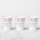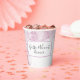 Personnalisez ces jolis Coupes en papier Mariage couleur Aquarelle rose pâle pour votre réception de mariage d'été décontractée mais classe ou fête de jardin de douche nuptiale. Ces gobelets jetables informels mais élégants présentent une photo florale peinte en aquarelle numériquement pétales de fleurs d'hortensia rose clair avec un arrière - plan blanc.