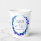 Aquarelle bleu foncé aqua et violet splash art feuillage de couronnes modernes tasses en papier mariage. Modifiez ces tasses avec les noms de votre mariée et de votre mariée et la date du mariage. © Unique aquarelle art et design par Sarah Trett. www.sarahtrett.com pour www.mylittleedenweddings.com
