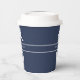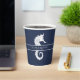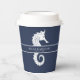 Les pièces de cette élégante suite de mariage présentent un style nautique classique et un style épuré et minimaliste. Des vagues stylistiques dans les teintes allant de l'aqua au bleu marine et une illustration d'hippocampe apportent des accents uniques. Un arrière - plan bleu marine avec une fine tuyauterie blanche et une grande image de cheval de mer donnent à cette tasse en papier mariage un look moderne saisissant. Idéal pour les mariages de club nautique, de bateau, de plage ou d'été. Recherchez ID836 pour voir cette suite complète et d'autres avec des accents d'éléments marins alternatifs.