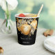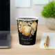 Tasses en papier à utiliser comme vaisselle de réception de mariage pour une réception de mariage, un dîner de répétition ou une douche nuptiale, avec le thème Faire-part de mariage de Noël Noir Or.