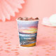 Plage tropicale, destination, île, océan, été, mariée et mariée, élégante, belle calligraphie, tasses de papier côtier. Parfait pour les faveurs de mariage. Veuillez le personnaliser avec vos noms et votre date.