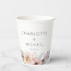 Élégantes tasses de papier Mariage Boho Blanc & Pastel. Idéal pour Ihre Hochzeit und einfach zu barbeiten. Füllen Sie Ihre Daten ein, Sie können die Schriftart, die Position usw. individuell durch "weitere Personalisierung" auswählen.
