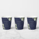 Gobelets En Papier Mariage floral élégant bleu marine verdure
