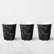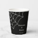 Ajoutez une touche personnalisée à votre mariage ou à un autre événement spécial grâce à ces tasses de papier personnalisées de style gothique avec une toile d'araignée graphique. L'illustration et le texte en blanc écru ou en coquille d'oeuf sont définis sur un arrière - plan noir.