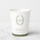 Gobelets En Papier Mariage monogramme de feuille blanche et verte oli